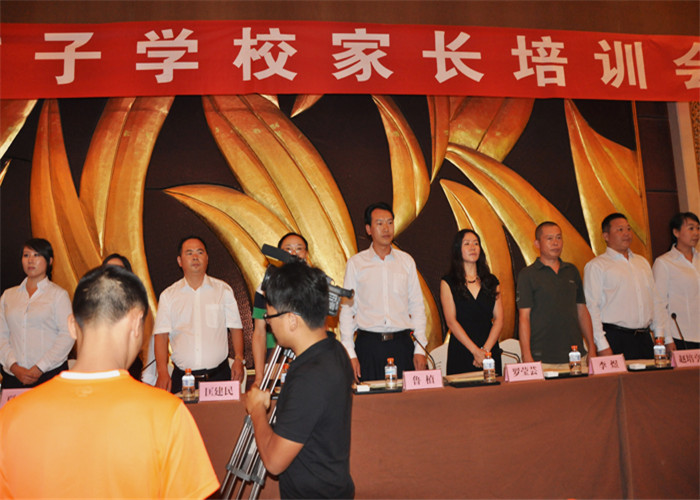 2014年8月9日下午,安寧市好孩子教育培訓(xùn)學(xué)校在舉辦了暑期家長(zhǎng)培訓(xùn)會(huì)。來自湖南、貴州、浙江及云南各州、市、縣的學(xué)生家長(zhǎng)共計(jì)216人參加了會(huì)議。學(xué)校校長(zhǎng)魯植、常務(wù)校長(zhǎng)匡建民、副校長(zhǎng)趙培亨、副校長(zhǎng)周榕樺、校長(zhǎng)助理李新紅、行政辦公室主任夏藝璇、總教官毛積敏等學(xué)校領(lǐng)導(dǎo)及部分班主任出席了會(huì)議。