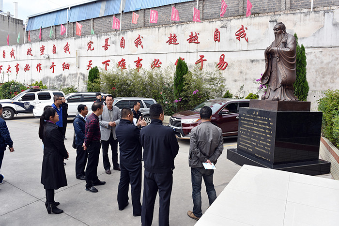 2017年4月21日上午,安寧市委常委、政法委書(shū)記李榮敬、市公安局政委張雙平、市政法委副書(shū)記龔誠(chéng)偉、市教育局黨委書(shū)記王永麗、市公安局連然派出所所長(zhǎng)王文、金方派出所所長(zhǎng)王學(xué)全、市關(guān)工委主任李庭貴、團(tuán)市委副書(shū)記張勇進(jìn)、市人民檢察院未成年檢察科室科長(zhǎng)孫曉宇等各部門(mén)領(lǐng)導(dǎo)一行22人蒞臨我校調(diào)研指導(dǎo)工作。