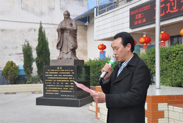 2015年12月22日上午,我校隆重舉行了孔子雕像落成典禮暨揭幕儀式。學(xué)校全體師生及校領(lǐng)導(dǎo)參加了儀式。儀式由弟子規(guī)老師馬文駿主持。