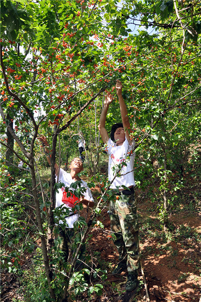 2016年5月4日上午,我校副校長兼總教官毛積敏帶領(lǐng)部分師生到安寧青龍界牌村櫻桃園為學生采摘櫻桃。