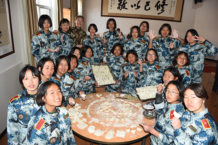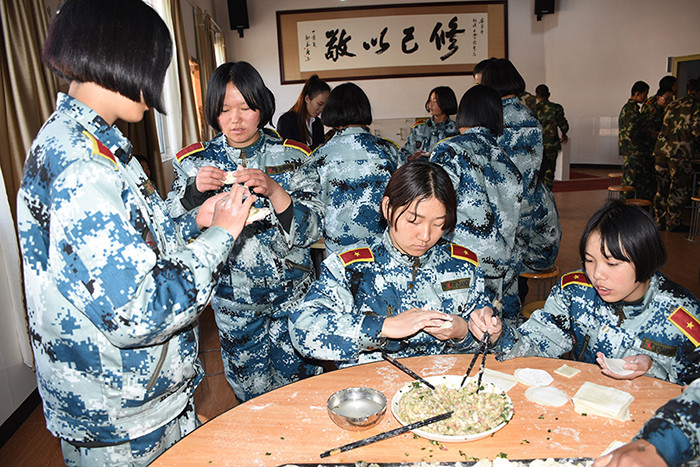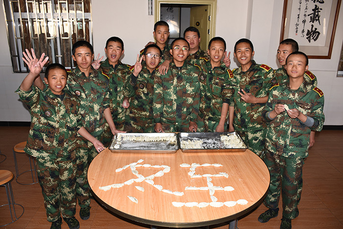 一大早,孩子們便欣喜若狂地來到食堂,迫不及待地想要大顯身手。副總教官王濤給孩子們講解了冬至的來歷和習(xí)俗后,各班主任和孩子們就一起開心地包起了餃子。你看,有的包、有的捏、有的說、有的笑、有的商討、有的相互切磋技巧......老師們一會(huì)兒做“督導(dǎo)員”,一會(huì)兒捋起袖子加入到包餃子的強(qiáng)大陣營當(dāng)中,師生同樂的暖意沁人心脾。孩子們包出來的餃子花樣繁多、千姿百態(tài),有敦實(shí)厚重的,有別致精巧的,還有四不像的?粗槐P盤別出心裁但都裹滿愛意的餃子,看著一張張掛滿面粉但都笑容燦爛的面容,吃著香溢滿口的餃子,別樣的冬至喜慶連連。