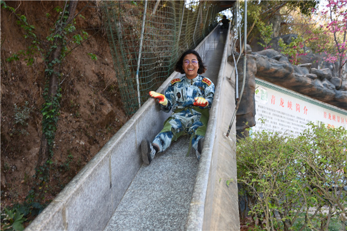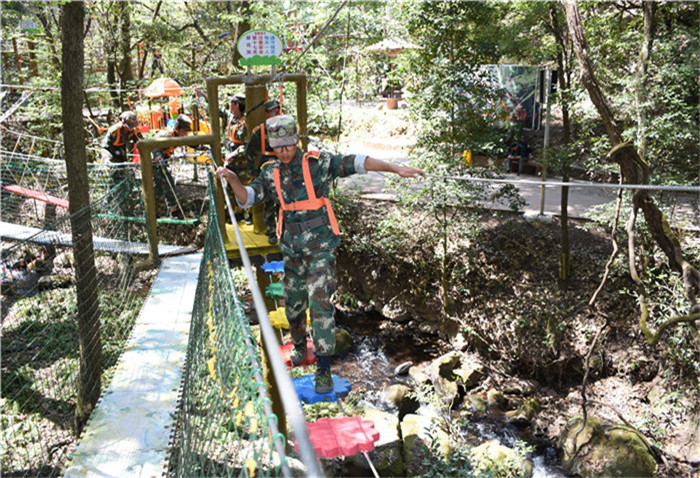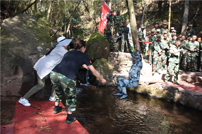 在老師們的帶領(lǐng)下,大家沿著山間的石板路,首先到達(dá)了第一個(gè)項(xiàng)目挑戰(zhàn)點(diǎn)——水上蕩繩(也叫笑料陷阱),孩子們?cè)诶蠋煹哪托闹v解和示范后,相繼進(jìn)行了挑戰(zhàn)。有的輕松自如,動(dòng)作規(guī)范;有的驚險(xiǎn)蕩過(guò),虛驚一場(chǎng);有的蜻蜓點(diǎn)水,老師巧妙護(hù)住。在結(jié)束第一個(gè)項(xiàng)目后,緊接著挑戰(zhàn)了“臂力渡河”,這個(gè)項(xiàng)目難度系數(shù)增大,為了安全起見(jiàn),老師下水保護(hù),挑戰(zhàn)成功的同學(xué)一臉興奮,挑戰(zhàn)不成功的也不氣餒,大聲說(shuō)著要再來(lái)一次。現(xiàn)場(chǎng)加油聲、歡呼聲此起彼伏,氣氛格外熱烈。隨后進(jìn)行的是“叢林穿越”,孩子們分為兩列縱隊(duì)興高采烈地沿溪而上,一條長(zhǎng)龍穿梭在山谷之中,和煦的陽(yáng)光透過(guò)稠密的樹(shù)葉灑落下來(lái),點(diǎn)點(diǎn)金色的光斑倔強(qiáng)地映照在孩子們喜笑顏開(kāi)的臉上,清脆的歡笑聲在山谷間回蕩。大家邊走邊在自己喜歡的地方,擺出不同的姿勢(shì),和小伙伴們留下最珍貴的回憶。清幽的山谷,呈現(xiàn)出一幅人與自熱和諧相處的畫(huà)面。