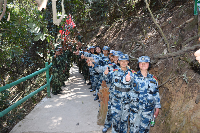 最后,大家一鼓作氣登到了山頂。放眼望去,山川峽谷,盡收眼底,云煙盡頭,天由藍(lán)漸白,山由白漸青,這時(shí),早已心胸開(kāi)闊,所有煩惱已被清風(fēng)過(guò)濾,變得干干凈凈。大家忽然就有了“一覽眾山小”和不羨仙的滿足與愉悅。