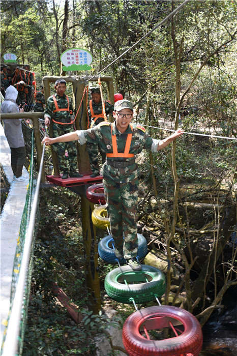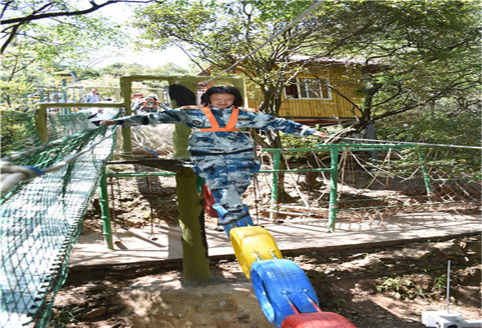 下午,孩子們?cè)凇皪{谷森林最美拓展大本營(yíng)”又開(kāi)始了一系列的高空挑戰(zhàn)項(xiàng)目,體驗(yàn)了這條“最美森林冒險(xiǎn)之旅”的時(shí)光隧道、鐵索連環(huán)、生命之門、單側(cè)過(guò)網(wǎng)等30個(gè)驚險(xiǎn)刺激關(guān)卡,其間還能看到彩蝶翩躚,藤蔓纏繞,腳下是清澈的山澗溪流。這是全國(guó)首個(gè)在峽谷森林中獨(dú)創(chuàng)、全程網(wǎng)絡(luò)化管理運(yùn)行的拓展大本營(yíng),全長(zhǎng)286米,全程趣味十足。雖然在挑戰(zhàn)過(guò)程中,有的孩子有過(guò)膽怯、有過(guò)害怕,但在老師們響亮的加油打氣聲中,孩子們沒(méi)有一個(gè)退縮、沒(méi)有一個(gè)放棄,憑借著頑強(qiáng)的毅力、堅(jiān)定的信念,全部通過(guò)了重重難關(guān)考驗(yàn)。