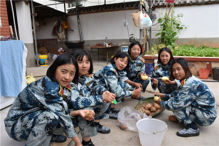 到了吃飯時間,同學(xué)們來到櫻桃園附近的農(nóng)家院,熱心的老板正在準(zhǔn)備著豐盛的午餐,同學(xué)們很懂事,都主動幫著廚師們?nèi)ヌ锢镎、洗菜。片刻間,一盤盤美味佳肴就上桌了,孩子們吃得津津有味,大呼過癮。