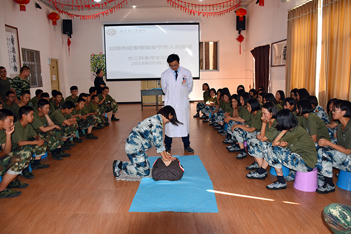 2018年5月21日下午,為全面提高全校學(xué)生對突發(fā)事故的科學(xué)、緊急救護(hù)能力,我校特邀請昆明市延安醫(yī)院安寧市人民醫(yī)院外二科主治醫(yī)師朱華、陸峻,護(hù)士胡亞瓊等專業(yè)醫(yī)護(hù)人員到校為孩子們開展應(yīng)急救護(hù)培訓(xùn)。