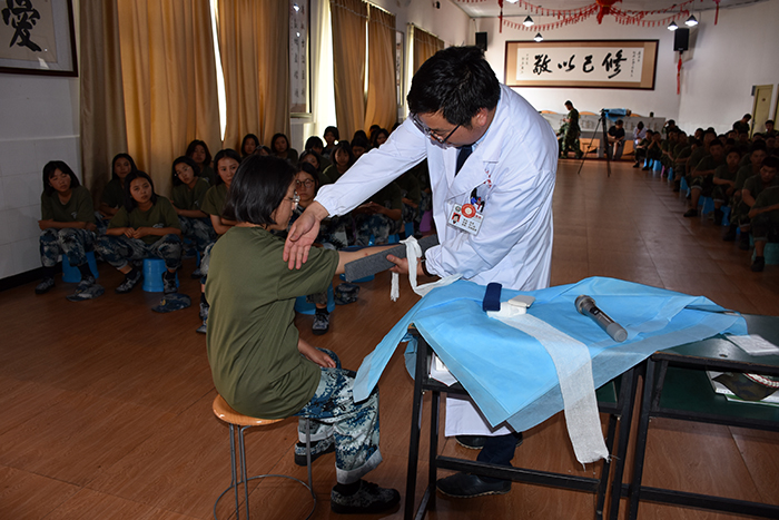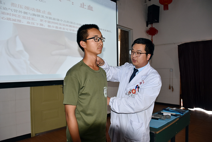 本次培訓(xùn),朱醫(yī)生用通俗易懂的語言,從日漸增多的意外傷害入題,對現(xiàn)實(shí)生活中遇到的異物梗阻、溺水防護(hù)、觸電防護(hù)等突發(fā)事件應(yīng)采取的有效救護(hù)措施。并著重講解了心肺復(fù)蘇的動(dòng)作要領(lǐng),孩子們興趣高漲,朱醫(yī)生讓孩子們對現(xiàn)場假人進(jìn)行模擬演練,并逐一指導(dǎo),每人都要過關(guān)才行。每做完一周期的心臟按壓,孩子們都覺得特別累,更深深地體會(huì)到了醫(yī)護(hù)人員的不易。隨后,朱醫(yī)生還對創(chuàng)傷救護(hù)的止血、包扎、固定、搬運(yùn)也作了解說與演示,指出了平常生活中的應(yīng)急誤區(qū)。