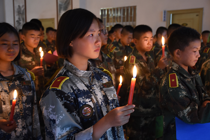 卡片制作結(jié)束后,孩子們手捧蠟燭,一邊深情地唱著《父親》,一邊看著卡片上的心聲,父親的形象一下子在閃動的燭光中高大起來,對父親的愧疚與思念頓時充斥了那顆滴滴答答的心,孩子們不禁淚流滿面。