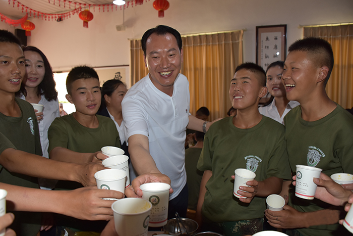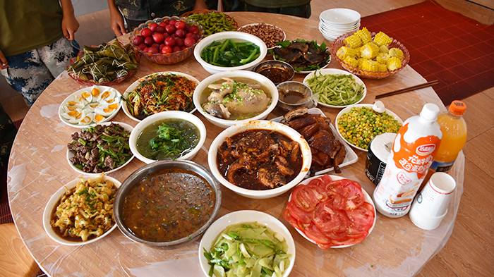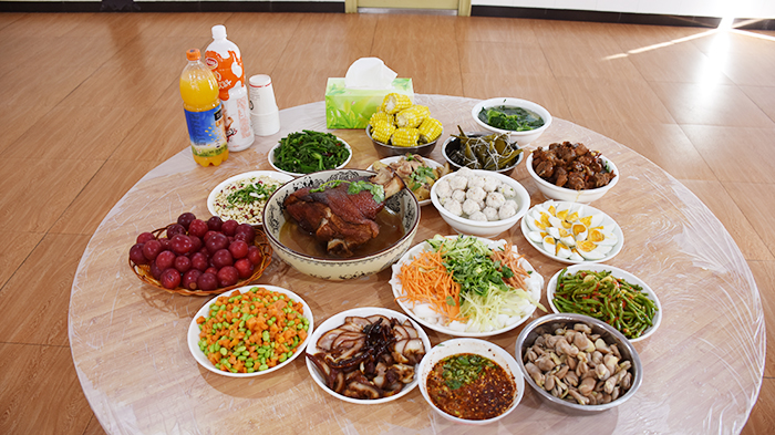 傍晚,一桌桌色香味美的飯菜全部就緒,粽子也蒸熟了,同學(xué)們興高采烈地一盤一盤端上桌,大家圍坐在一起,看著自己的勞動(dòng)果實(shí)說著、笑著!過一會(huì)兒,魯植校長發(fā)表了節(jié)日祝賀和熱情洋溢的講話:“今天的端午不一樣,希望孩子們在沒有家人陪伴的節(jié)日里,能夠更深刻地認(rèn)識(shí)到親人的重要性;在沒有踏青旅游的節(jié)日里,能夠用足夠的時(shí)間改變自己,在學(xué)校完成學(xué)習(xí)目標(biāo),追求自己的人生理想……”聽到校長的祝愿,同學(xué)們掌聲不斷。開席后,孩子們吃著豐盛的晚餐、品嘗著獨(dú)特香味的粽子,不時(shí)向老師道祝福,和同學(xué)相共勉。在攝像機(jī)的鏡頭下,孩子們還爭先恐后地向遠(yuǎn)方的爸媽送祝福,希望他們端午安康!