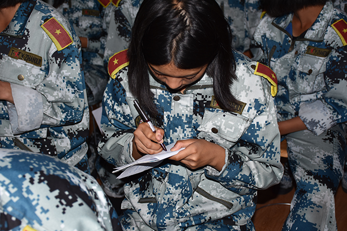 小故事,大道理。聽完“老教授”的回答,孩子們?nèi)粲兴。人格的較量?那是怎樣的一種較量?帶著疑問,周老師從人格的定義及心理特征、常見的人格缺陷及調(diào)節(jié)、怎樣塑造健全人格等方面闡述,孩子們聚精會神地跟著周老師了解了氣質(zhì)、能力、性格等多方面的內(nèi)容。通過60道氣質(zhì)測驗題,更是全面了解了自己是個什么樣的人。