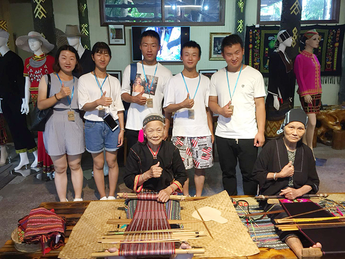 黎族以農(nóng)業(yè)為主,婦女精于紡織,至今還保留著傳統(tǒng)的手工藝,“黎錦”、“黎單”聞名于世,是中華文化寶庫(kù)中重要的瑰寶!身臨其境中,阿婆的紡織技術(shù)讓我們嘆為觀止,大家忍不住偷偷留下紀(jì)念。