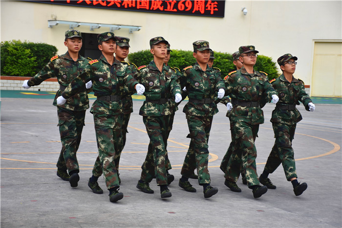 本次軍訓匯報表演既是隊列隊形規(guī)范化的一次大練兵,更是同學們健康、活潑、向上團隊精神的一次大展示,同學們飽滿的熱情和颯爽的英姿,為現(xiàn)代青少年的健康快樂成長添了一道亮麗的風景,向祖國69歲的生日獻上一份厚禮!
