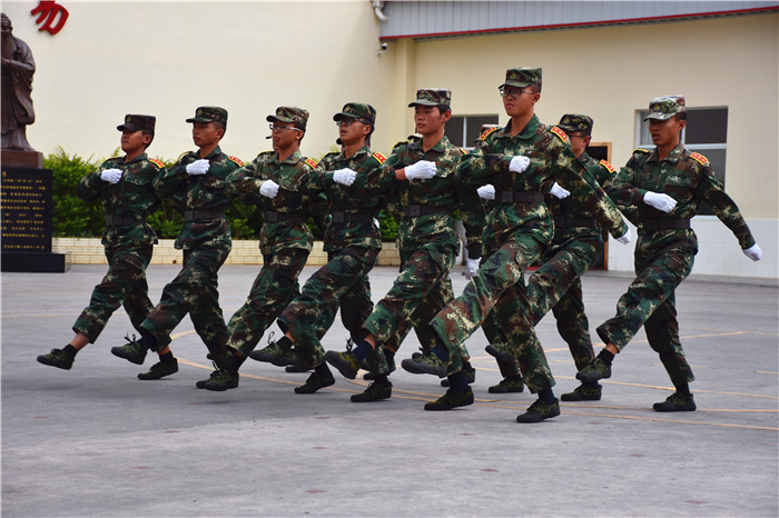 首先進行的是方陣表演,在指揮員剛勁有力的口號下,同學們精神抖擻、斗志昂揚,以班級順序依次迎接檢閱,展示訓練成果。