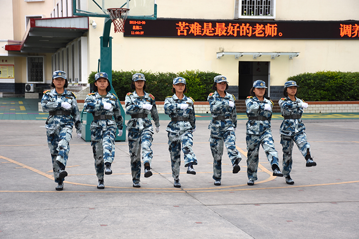 分列式的同學們步伐鏗鏘、隊形整齊、口號嘹亮、自信昂揚,展現(xiàn)了良好的精神風貌;擒敵拳方陣的同學們也毫不遜色,剛勁有力的踢腳勾拳,嫻熟連貫的軍體動作,展現(xiàn)了頑強拼搏和勇做時代弄潮兒的決心;女生方隊的手語操《三德歌》,更是把孝德、誠德、愛德的中華民族優(yōu)秀傳統(tǒng)美德表現(xiàn)得淋漓盡致。大家不禁心潮澎湃,日常的苦與累,值!