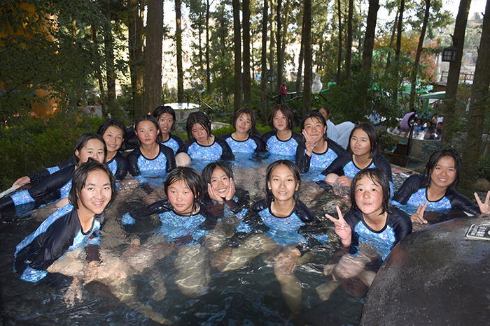 17日午飯后,第一批女生在老師的帶領(lǐng)下打了頭陣,先行到達(dá)溫泉感受清幽的森林、婉轉(zhuǎn)的鳥(niǎo)鳴、林間的漫步、水中的SPA.....