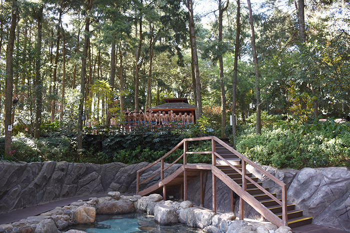 溫泉是沐浴,但有如說(shuō)是沐浴,不如說(shuō)是“凈心”。泡池中,熱騰騰的蒸汽氤氳滿池,走進(jìn)她,將自己浸入溫暖的泉水之中舒展,再舒展,在湯中或閑目臥養(yǎng)、或禪坐清波、或抬頭看看藍(lán)天白云,或是留神欣賞下稠密樹(shù)葉間灑落下來(lái)的點(diǎn)點(diǎn)陽(yáng)光,亦或是看看曲徑通幽的小道上走過(guò)的路人,都會(huì)將那鬧市的喧囂、胸中的愁煩、身心的疲憊蕩滌得無(wú)影無(wú)蹤,整個(gè)人都感到了純粹的放松與寧?kù)o。