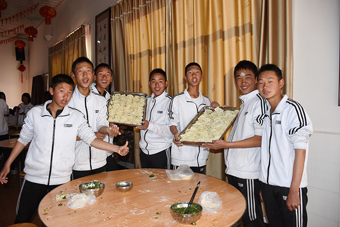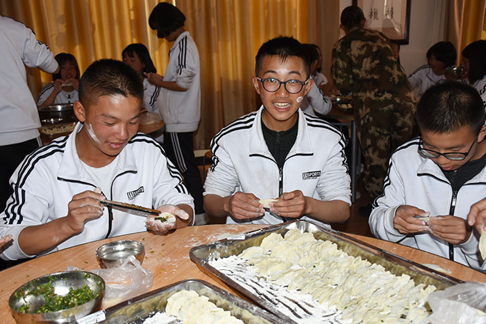 好孩子學(xué)校師生包餃子過新春