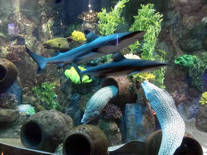 在經(jīng)過(guò)一段時(shí)間的休閑放松后,孩子們又開(kāi)始了室內(nèi)電玩——碰碰車的一次次溫柔對(duì)峙。玩得精疲力盡后,還是不愿停下腳步,而是徑直到了水族館,在海底長(zhǎng)廊里,以空間立體角度去觀賞礁叢中袖珍的海馬、可愛(ài)的小丑魚、鮮艷的?雀鞣N各樣的海洋生物,置身其中,仿佛置身于海底世界。一波一波的快樂(lè)余溫還未褪去,又被4D的水幕電影俘虜了眼球,震撼的表演讓孩子們連連尖叫不斷。