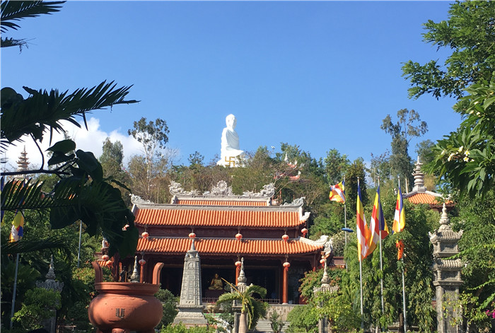 11日清晨,伴著金色的陽光、新鮮的空氣,新的一天拉開帷幕;蛟S,剛來芽莊時,就會發(fā)現(xiàn),在芽莊市區(qū)任何地方都能看見一尊24米高的白色大佛,這便是龍山寺了。寺中的大佛安坐于蓮花之上,坐臥山巔,好似在俯視眾生的歡樂與煩憂,讓人在佛光之間感悟山海奇跡。注視著當?shù)匦疟娤囟\禮佛的場景,多少會讓人的內(nèi)心能夠平靜下來。