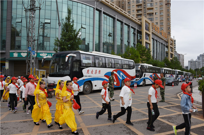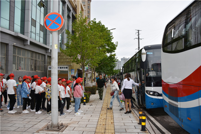 由于東湖小學(xué)離好孩子學(xué)校有一段距離,為保證孩子們的路途安全,學(xué)校領(lǐng)導(dǎo)提前安排好6輛大客車到學(xué)校早早等待,把全校師生和家長(zhǎng)安全接到好孩子學(xué)校。