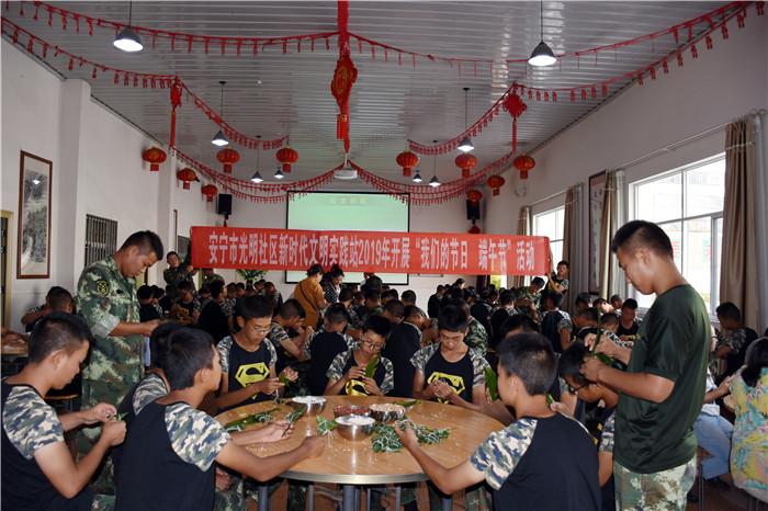 其間,安寧市紀委監(jiān)委、巡察辦,安寧市光明社區(qū)新時代文明實踐站的領(lǐng)導(dǎo)們還親切地走到孩子們身邊,手把手地交大家如何包粽子;孩子們交換了如何把粽子包得更漂亮、更有型的心得;學(xué)校大屏幕上也一直滾動播放著端午節(jié)的相關(guān)知識;顒蝇F(xiàn)場一片歡騰,笑聲連連,領(lǐng)導(dǎo)、老師、孩子樂成一團;顒游猜暎總班的孩子們拿著自己親手包的粽子合影留念,記錄下美好的一刻。