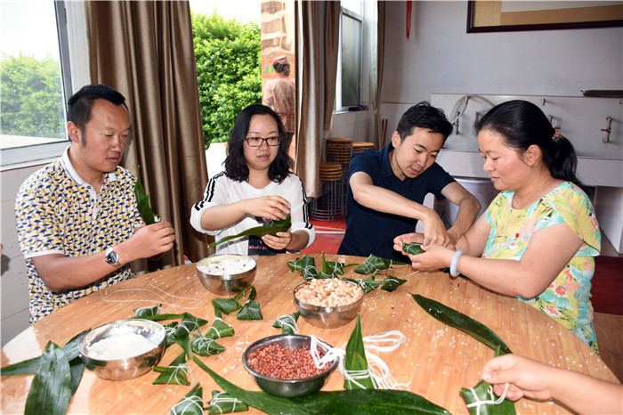 傍晚,一桌桌色香味美的飯菜全部就緒,一個個飄著濃濃葉香的粽子也呈現(xiàn)在餐桌上。孩子們興高采烈地圍坐在一起,吃著豐盛的晚餐、品嘗著獨特香味的粽子,不時向老師道祝福,和同學(xué)相共勉。在攝像機的鏡頭下,孩子們還爭先恐后地向遠方的爸媽送祝福,希望他們端午安康!值得一提的是,在端午當(dāng)天,我校還迎來了畢業(yè)生楊鑫誠回校探望,和師生們也一起共慶端午、共話佳節(jié)。