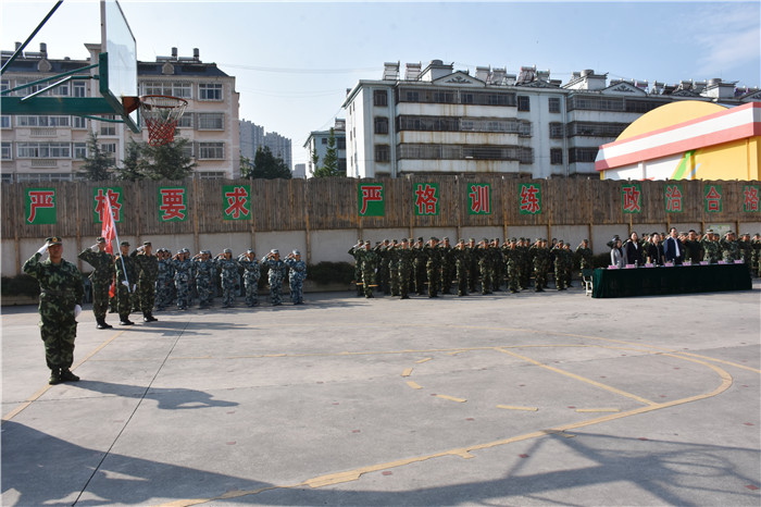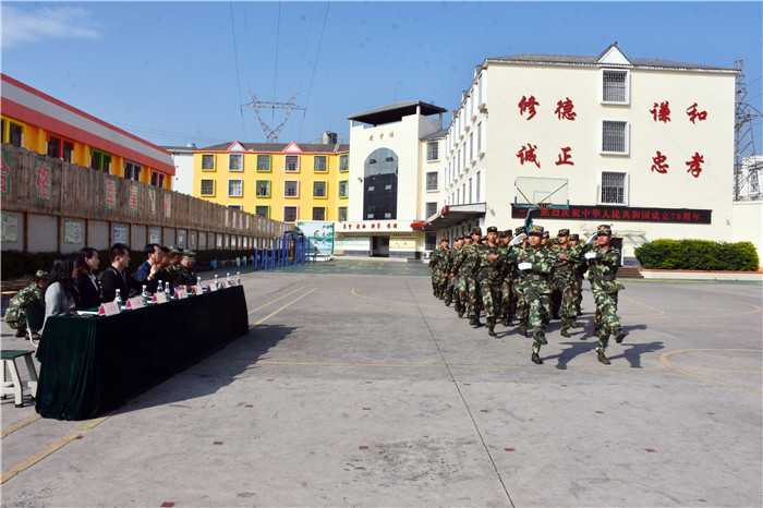 隨后,進行了迎校旗儀式。緊接著,在洪亮的分列式進行曲中,學生們穿著統(tǒng)一的作訓(xùn)服,排著整齊的隊伍,喊著嘹亮的口號,昂首闊步、英姿颯爽地依次走過主席臺接受檢閱,盡顯青春風采。