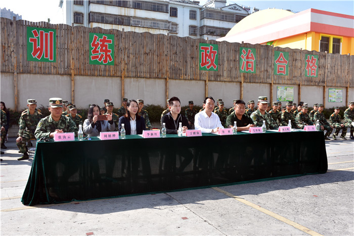 最后,學校魯植校長和從深圳遠道而來的畢業(yè)生(丁同學)爸爸分別作了講話。魯校長講到:“在這個舉國歡慶的日子里,我校以軍訓(xùn)匯演的方式向祖國70華誕獻禮我感到非常高興。世界并不太平,作為中國的一個子民,身在這樣的國度,我們都是幸福的。今天看到孩子們的表現(xiàn),我更是欣慰!希望你們明白來這里學習的目的,珍惜這里的時光,在花季的年齡好好學習,再接再厲。除陰霾,揚正氣,將來為祖國發(fā)展添磚加瓦、增光添彩!