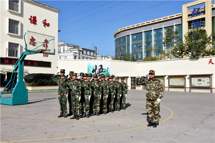 上午九時,同學們軍容嚴整、英姿颯爽、步履堅定、精神抖擻地入場,進行了莊嚴的升國旗儀式,隨后軍訓匯報表演正式開始。