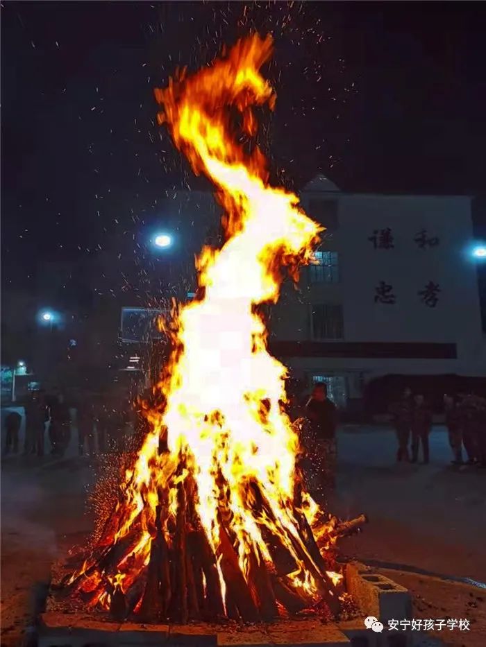 勁歌熱舞后,大家期待已久的篝火晚會正式開始。在極具民族特色的“納西三部曲”、“藏族鍋莊”、“阿細(xì)跳月”音樂聲中,師生們手拉手,一起圍著熊熊燃燒的篝火歡快的唱著、跳著,載歌載舞,即使沒有舞蹈功底,也可以樂在其中,盡情燃燒激情,想必也沒有什么比這個更燃的了。篝火映紅了夜空,也映紅了孩子們的笑臉。