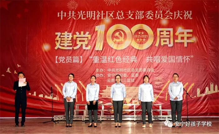 為隆重慶祝中國共產(chǎn)黨百年華誕, 2021年5月28日下午,我校參加由中共光明社區(qū)支部委員會(huì)主辦,安寧市紀(jì)委、監(jiān)委,云南省第三監(jiān)獄協(xié)辦的慶祝中國共產(chǎn)黨建黨100周年系列活動(dòng)之“重溫紅色經(jīng)典•共唱愛國情懷”紅歌比賽活動(dòng)。