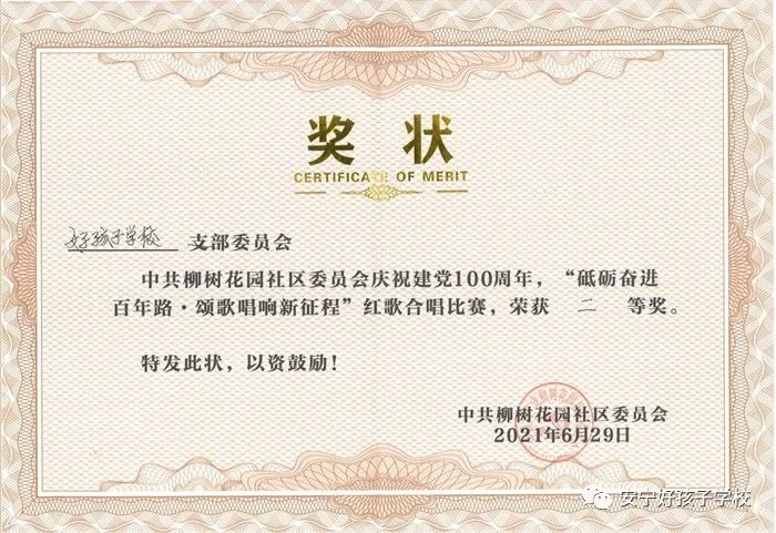 好孩子學校參加柳樹社區(qū)“砥礪奮進百年路 頌歌唱響新征程”紅歌比賽榮獲二等獎