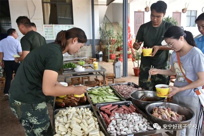 夕陽西下,孩子們在老師的帶領下準備晚餐。拾柴、生火、洗菜、炒菜......大家各展所長,整個草灘上變得熱鬧起來。不一會兒,一陣陣香味撲鼻而來,一盤盤讓人垂涎欲滴的菜肴便呈現(xiàn)在同學們眼前!伴_席!”隨著尹校長的一聲令下,大家迅速行動起來,紛紛舞動著筷子,爭相品嘗著別樣的晚餐。