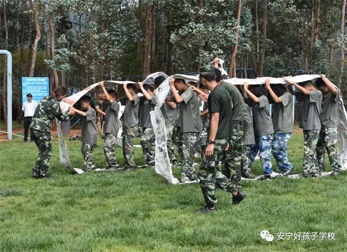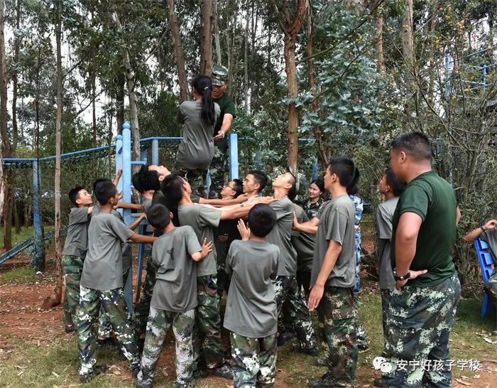 品嘗了特色美味佳肴后,稍作休整,大家便來到了項目多樣的戶外拓展基地,體驗了叢林穿越網繩、蹺蹺板、蕩秋千、蕩橋、攀巖、信任背摔等10余個項目;顒又校⒆觽兪冀K保持飽滿的熱情、高昂的斗志,積極參與,用心體會,努力完成著每一個項目。雖然在挑戰(zhàn)過程中,有的孩子有過膽怯、有過害怕,但在老師的幫助和隊友們響亮的加油打氣聲中,他們沒有退縮、沒有放棄,憑借著頑強的毅力,堅定的信念和團結協(xié)作的精神通過了重重難關考驗。