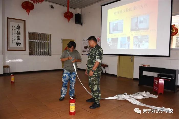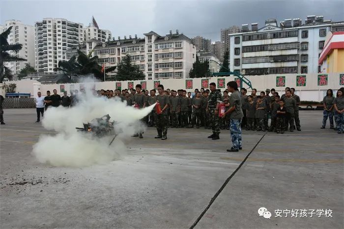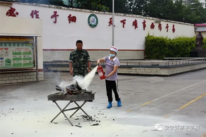 最后,進(jìn)行了撲救演練。操場(chǎng)上的木材點(diǎn)燃后,火苗迅速變成了熊熊大火,老師開(kāi)始現(xiàn)場(chǎng)演示滅火設(shè)備(滅火器、高壓水槍?zhuān)┑氖褂梅椒ǎ⒅笇?dǎo)全部學(xué)生親自操作演練。