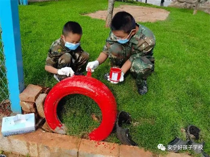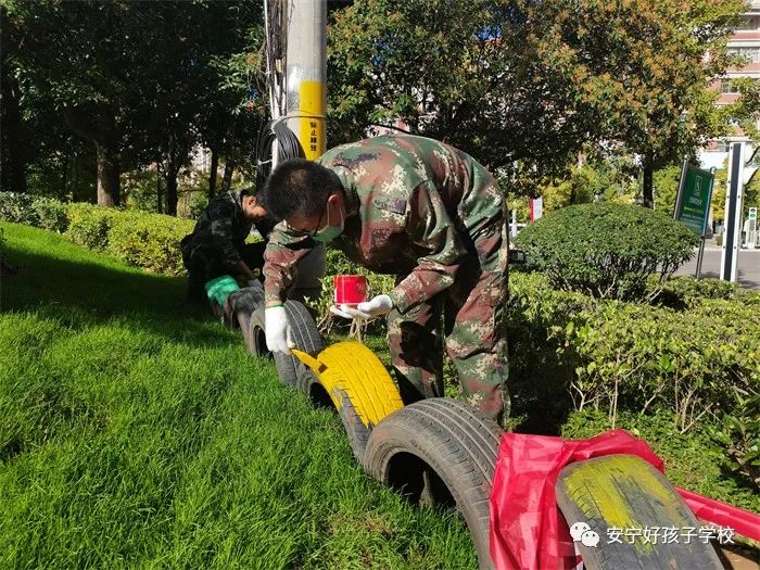 活動(dòng)前,老師首先給同學(xué)們講解了活動(dòng)的注意事項(xiàng),隨后便分發(fā)了彩繪輪胎所需的刷子、顏料等工具。同學(xué)們便興致勃勃地將輪胎擺出了好看的造型。有的放在花壇綠地上,有的放在小路兩邊,靜待華麗變身。