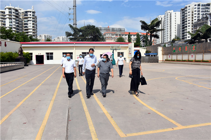 2020年5月18日下午,安寧市教體局教育科科長畢加昌率局機(jī)關(guān)干部王艷莉、安寧市疾控中心梁醫(yī)生、市基教中心李老師等蒞臨我校檢查指導(dǎo)疫情防控工作。