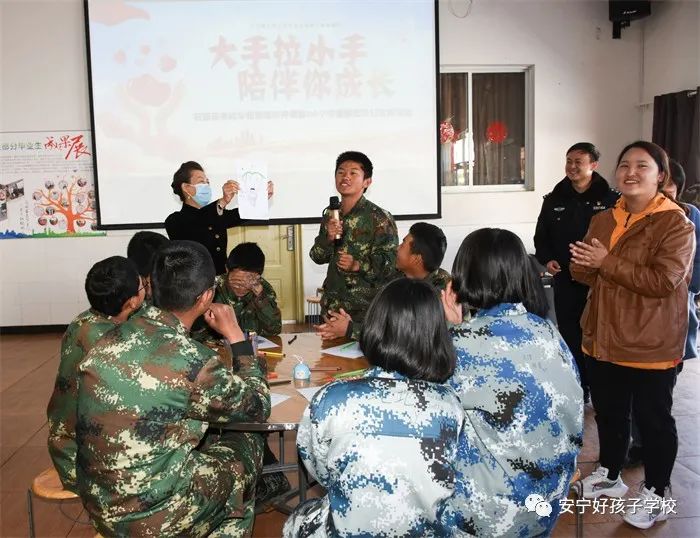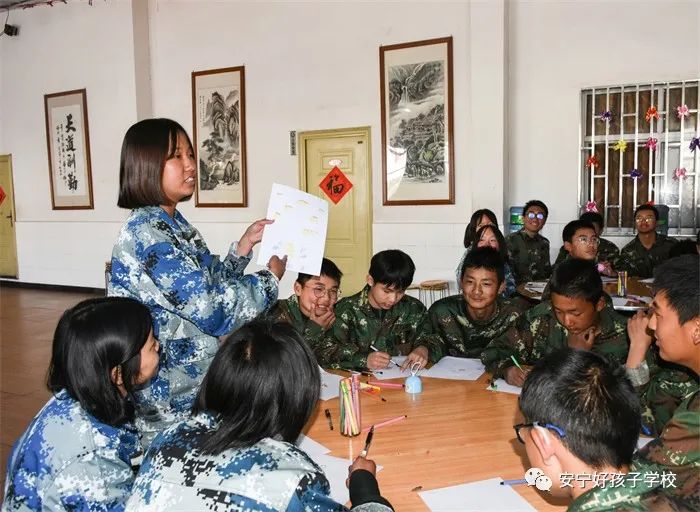 隨后,省未管所的兩名心理咨詢師組織同學(xué)們開展了一次集體參與的心理團(tuán)輔活動(dòng)。活動(dòng)開始前,老師通過破冰小游戲《拍拍操》,引導(dǎo)孩子們打開心扉積極融入進(jìn)來(lái)。之后,同學(xué)們?cè)诶蠋煹闹笇?dǎo)下分組圍坐,按照老師的要求完成屬于自己的心理自畫像,并爭(zhēng)先恐后地舉手發(fā)言,與大家分享自己的作品,現(xiàn)場(chǎng)掌聲不斷。最后,老師總結(jié)道:“其實(shí)每一幅圖畫中都有一個(gè)故事或期待,通過心理自畫能讓同學(xué)們更加深入地了解自己,對(duì)認(rèn)識(shí)自我有一個(gè)新的探索。”輕松、愉快的活動(dòng)氛圍,促使同學(xué)們主動(dòng)敞開心扉直面自己,接納他人,客觀全面的認(rèn)識(shí)自我。