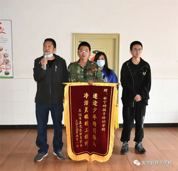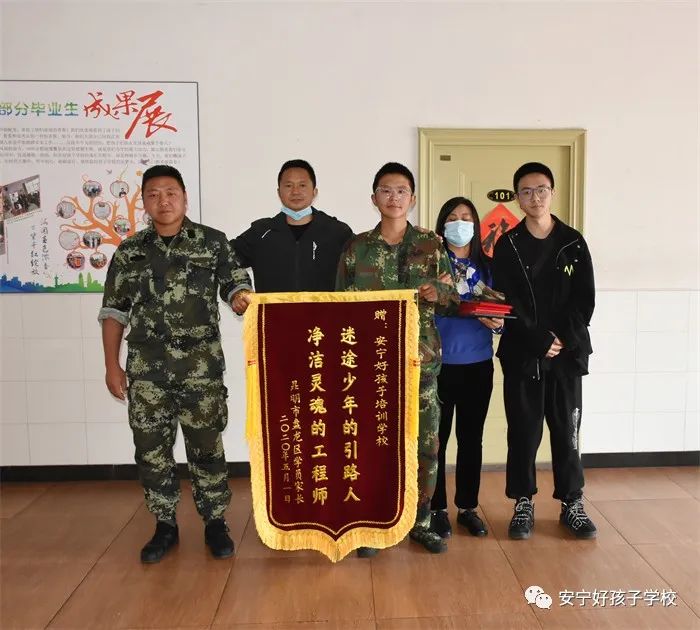 2022年5月4日,我校學(xué)生李昱峰順利畢業(yè)。在出營儀式上,他的家長將繡有“迷途少年的引路人,凈潔靈魂的工程師”字樣的錦旗贈給學(xué)校,以此感謝學(xué)校和老師對孩子的辛勤培育,學(xué)校教務(wù)主任張汝云代表學(xué)校接過了這面沉甸甸的錦旗。