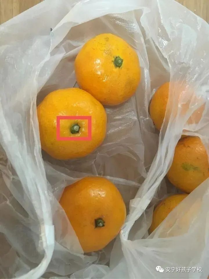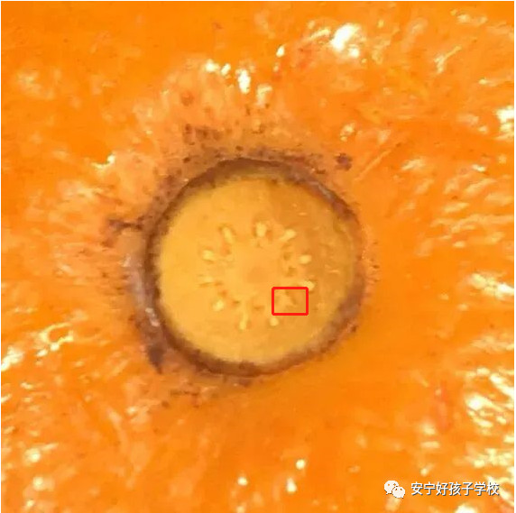 最后一個實驗是不剝開橘子皮,猜橘子的瓣數(shù)。同學(xué)們拿起橘子認(rèn)真觀察,左看右看,轉(zhuǎn)著圈看,瞇著眼看,對著光看......或猶豫或堅定地說出自己猜的數(shù)字,然后剝開橘子看是否和自己猜的數(shù)字吻合。同學(xué)們有的猜對(或者說是蒙對),有的相差較大,但老師卻一猜一個準(zhǔn)。正當(dāng)同學(xué)們非常好奇老師是怎么做到的時候,老師便為大家揭曉答案:每個橘子上都有個綠梗,將橘子蒂頭整個剝掉,能看到一圈小白點,白點多少個,橘子就有多少瓣(但若發(fā)現(xiàn)2個白點中間空出一個位置,或有那種似有非有的白點,大可能就是沒發(fā)育好的橘子瓣)。同學(xué)們恍然大悟,原來小小的橘子里面還隱藏著這樣的奧妙呢!