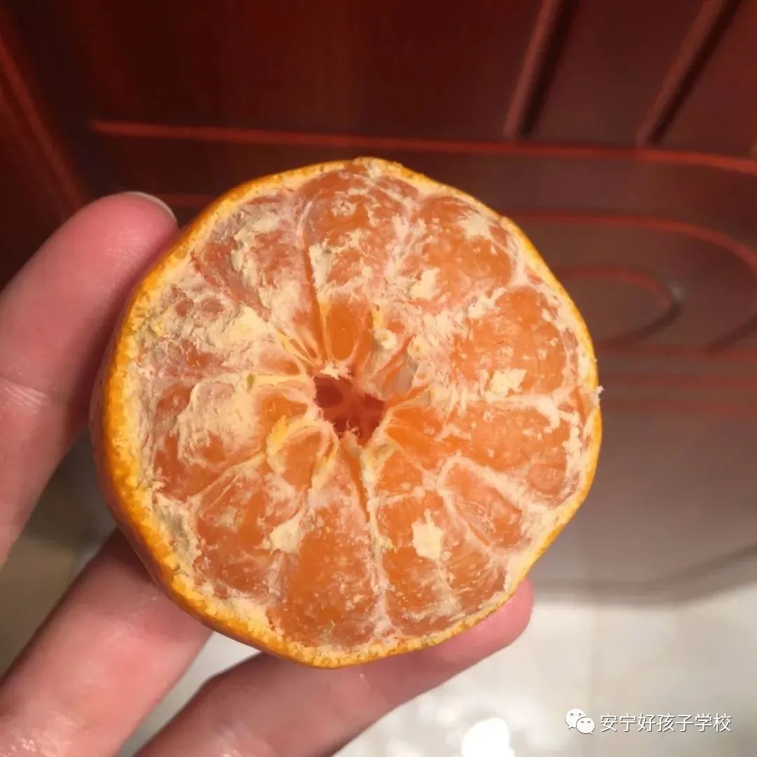小白點有幾個,就有幾瓣橘子,看這個應(yīng)該有十瓣。不過,請仔細看,右下角好像空出一個位置,說明這個空位可能有一瓣發(fā)育不好的橘子