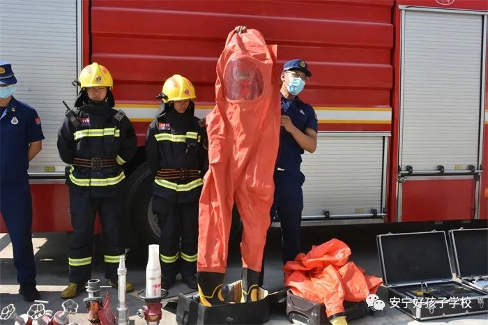 為了讓消防知識在同學(xué)們心中扎根,實(shí)操演練結(jié)束后,消防指戰(zhàn)員還向大家講解了消防水泵、滅火毯、防煙面罩、多路閥、隔熱服、破拆工具、水帶等消防器械的功能及其使用方法。