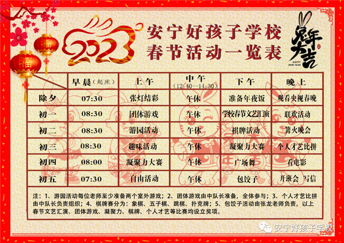 學(xué)校準(zhǔn)備豐富多彩的活動(dòng),就是希望孩子們能在這里過一個(gè)開心快樂、意義非凡的春節(jié)。