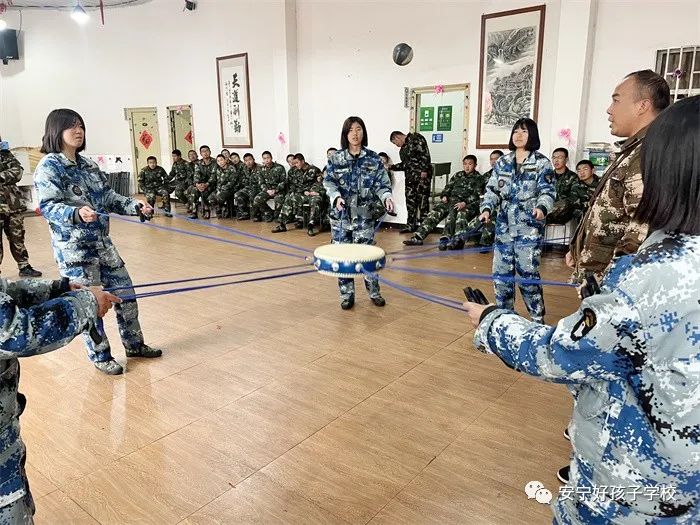 聽完,同學們不以為然,都認為很簡單,可沒想到一拉動繩子球就以掩耳不及迅雷之勢落地。幾次失敗后,有的同學開始著急,老師提醒同學們不要急躁,繩子要拉直,鼓面要保持水平,隊員要齊心協(xié)力,眼往一處看,勁往一處使,心往一處想。經(jīng)過練習調(diào)整,隊員們從生疏慢慢熟練起來,配合默契度也越來越高。他們拉緊手中的繩索,面部神情也由之前的游離漠視聚焦為專注認真,急躁抱怨也變?yōu)槠胶蛯捜,平衡與控制掌握得越來越好,球落鼓面的敲擊聲次數(shù)越來越多,上下抖動之間,小球舞動如精靈。尤其球在一次次即將掉落卻又被戲劇性地“救”回來時,那樣緊張興奮的心情無以言表。小組同心的力量,正悄悄熔煉著這個團隊,大家樂在其中。