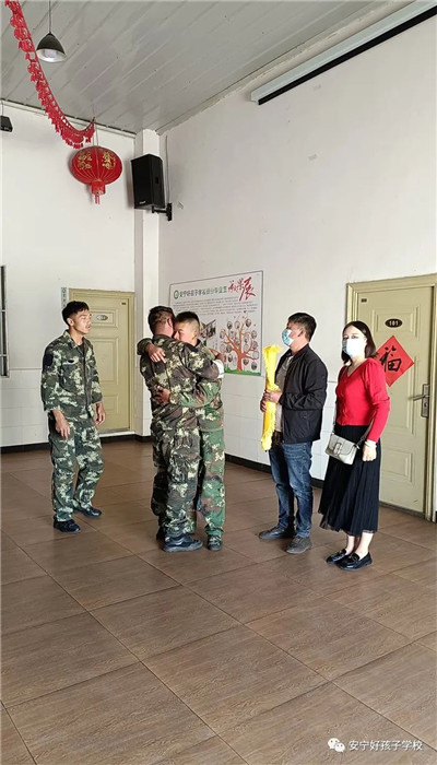 秦金波同學的華麗蛻變讓這個堅強的父親忍不住落下了熱淚,他哽咽地說:“這是孩子第一次和我們分開這么久,八個月里,思念每天都充斥著我們的內(nèi)心,夜深人靜時也偷偷流下了無盡的淚水,孩子不在我們身邊的日子,總擔心他吃得好不好?穿得暖不暖?會埋怨我們送他到這里吃苦嗎?他也會像我們想他一樣想我們嗎?剛剛孩子和我們緊緊擁抱的那一刻,真的久違了!我已記不清上一次和孩子擁抱是什么時候了,曾經(jīng)看著他和我們漸行漸遠的背影,心如刀割。孩子來到好孩子學校后,我們每次來看他,都能感受到他的進步與成長。今天,當孩子站在我面前,我真切地感受到了他那顆火熱而善良的心在怦然跳動!他長大了,懂事了!謝謝老師們把他當幼苗一樣的呵護,讓他在這塊肥沃的土壤里盡情成長,你們辛苦啦!”