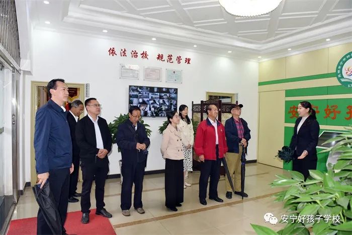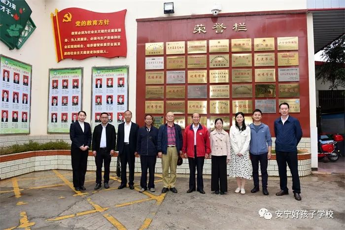 2023年5月15日上午,昆明市關工委常務副主任、市未司項目指導小組副組長管宏亮,昆明市未司項目指導辦主任趙久詩,辦公室主任牛晶珊、副主任鄭蓉蓉,在安寧團市委書記高源、市關工委常務副主任李庭貴、團市委副書記徐濟炳、市“五老”代表楊貴福等領導的陪同下,蒞臨我校調(diào)研指導工作。
