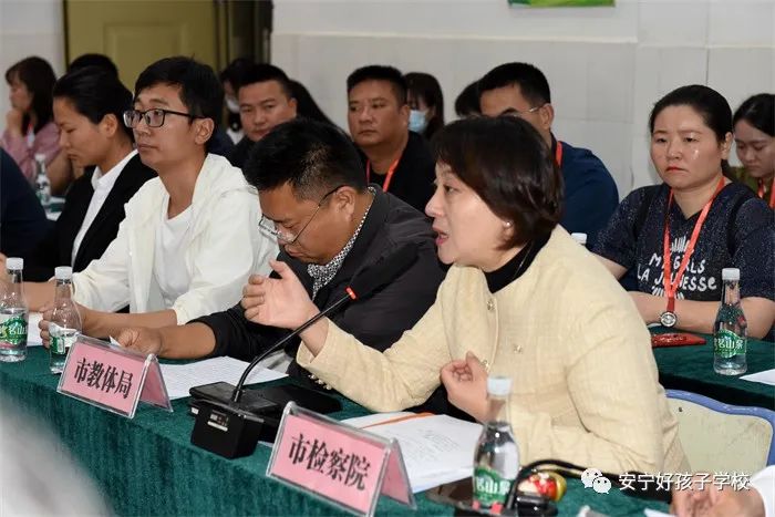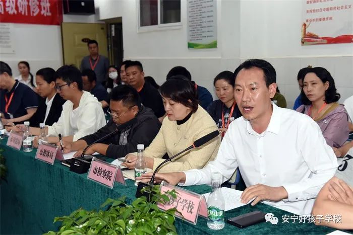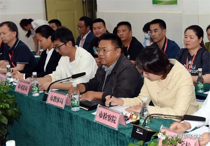 緊接著,召開了座談會(huì)。座談會(huì)伊始,魯校長(zhǎng)介紹了出席領(lǐng)導(dǎo)。隨后,安寧市教育體育局副局長(zhǎng)潘健致歡迎辭,并向領(lǐng)導(dǎo)們報(bào)告了安寧市的歷史沿革和全市教育事業(yè)發(fā)展的情況以及取得的各項(xiàng)成績(jī)。隨后,安寧市人民檢察院派駐溫泉檢察室主任孫曉宇向領(lǐng)導(dǎo)們作了安寧市預(yù)防青少年違法犯罪工作經(jīng)驗(yàn)報(bào)告。孫主任說(shuō)道:“安寧既是全國(guó)文明城市,也是云南省唯一一家預(yù)防未成年人犯罪全覆蓋的地方。安寧市竭力打造社會(huì)、社工、社區(qū)‘三社’聯(lián)動(dòng)的預(yù)防模式,把完善預(yù)防體系建設(shè)作為提升社會(huì)治理現(xiàn)代化的重要途徑。前端,有好孩子學(xué)校作為臨界預(yù)防和社會(huì)觀護(hù)的重要陣地;后端,把駐省未管所刑罰執(zhí)行監(jiān)督,作為教育改造涉罪未成年人、預(yù)防再犯的重要抓手,一體化推進(jìn)未病先防、既病防變、疾后防復(fù),探索出了具有安寧特色的預(yù)防未成年人違法犯罪工作新格局。而且引入國(guó)有化社會(huì)資源,幫助其就業(yè),預(yù)防再犯。尤其是聯(lián)合教體、公安著力打造的‘靈雨之光’工作室,有力幫助了公安一站式取證和受害人的心理康復(fù)。此外,還聯(lián)合公安開展教職工入職查詢,對(duì)老師品德進(jìn)行前期考察,織密校園安全防護(hù)網(wǎng)。”