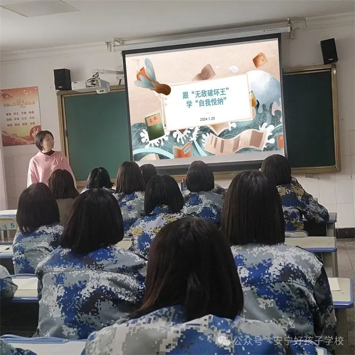 課程伊始,趙老師播放了動畫電影《無敵破壞王》,以電影主人公的經(jīng)歷為參照,引導(dǎo)同學(xué)們看到自我悅納要經(jīng)過歷程,并詳細(xì)講解了不同階段對應(yīng)的不同挑戰(zhàn)。