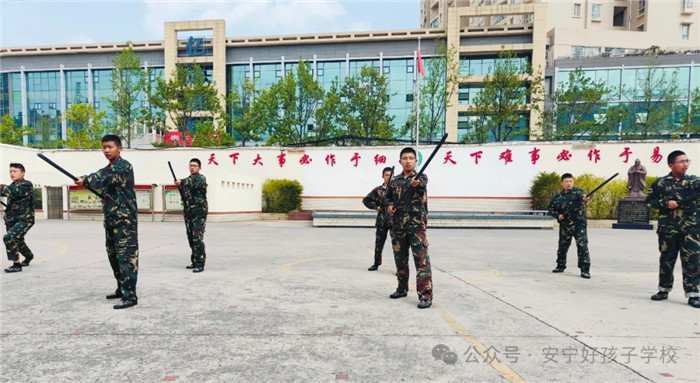 隨后,進(jìn)行的是男生方隊(duì)的棍術(shù)表演,同學(xué)們目光堅(jiān)定,不論是分解動(dòng)作,還是連貫動(dòng)作,一招一式,干凈利落、蒼勁有力,展現(xiàn)出新時(shí)代“小兵”的剛毅堅(jiān)卓。