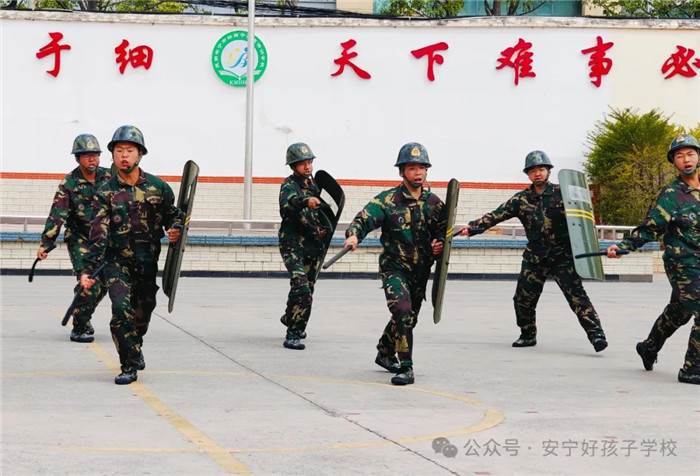 伴隨著震耳欲聾的吶喊聲,男生方隊(duì)手持防暴盾和警棍現(xiàn)場進(jìn)行了反恐防暴模擬演練,大家氣勢十足、配合默契、訓(xùn)練有素,毫不拖泥帶水,成功將“歹徒”制服,演練過程環(huán)環(huán)相扣、緊張激烈,現(xiàn)場掌聲不斷。
